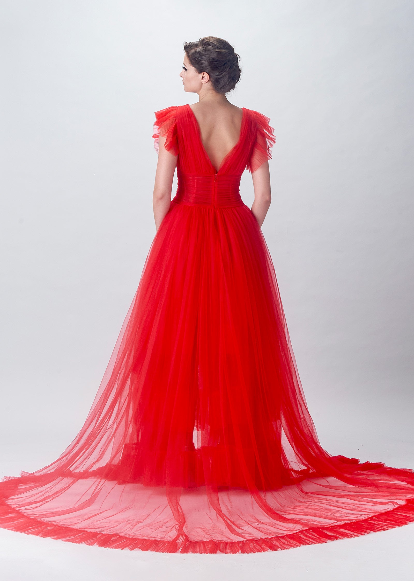Edgy Ball Gown with Layers of Tulle Pleated Ruffles